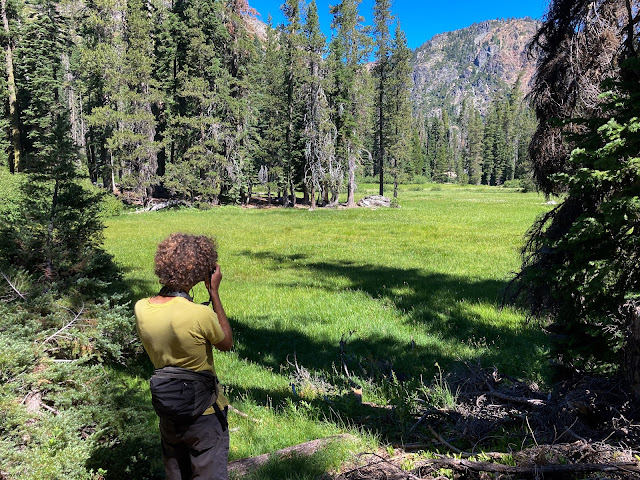 On the trail, we soon passed through several lush meadows with wildflowers in bloom. Nick was in his glory, stopping frequently (thanks Nick!) to take photos of various flowers. 650, in fact!